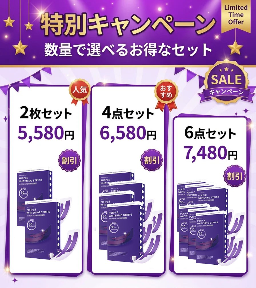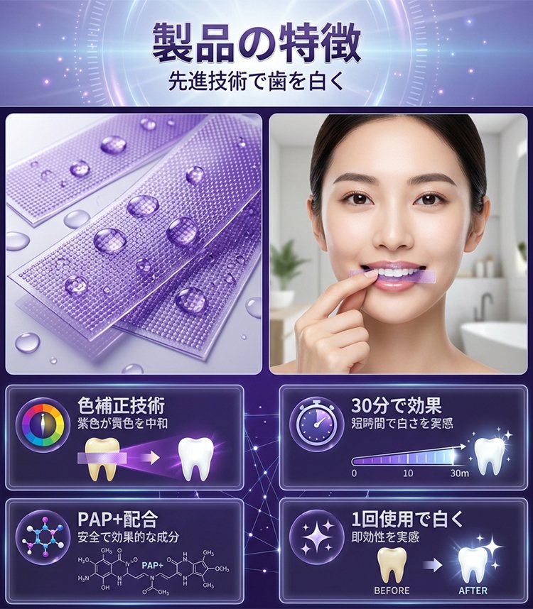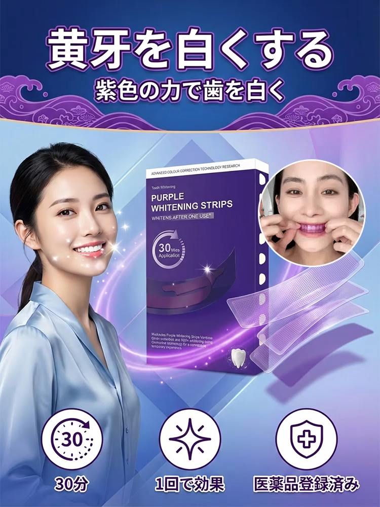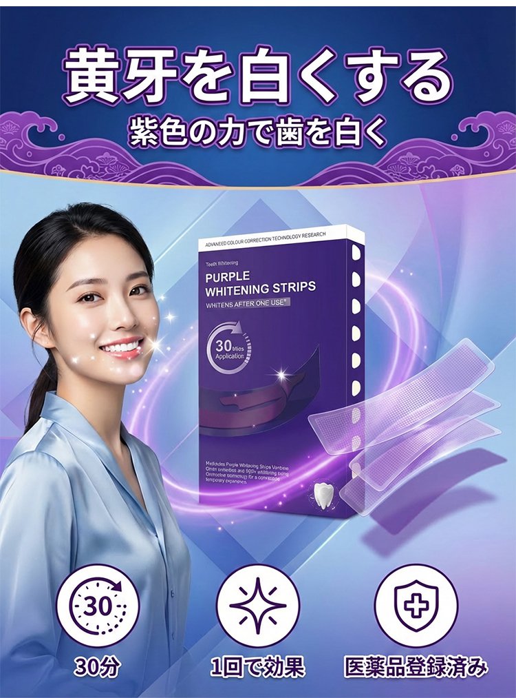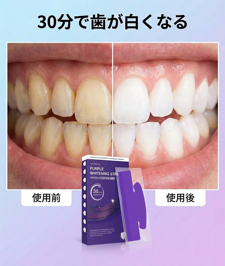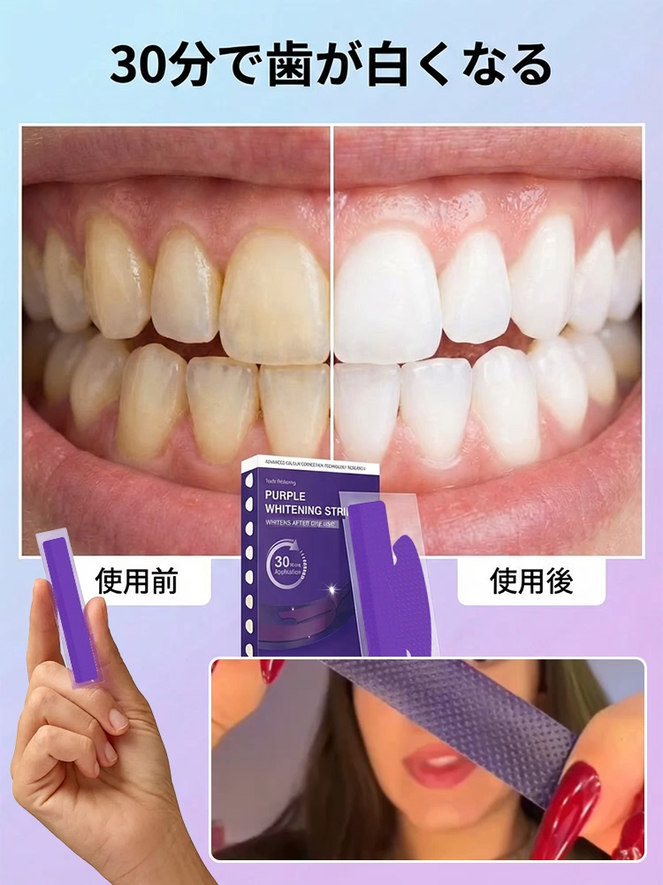 ホワイトニングステイン除去パープル歯貼り